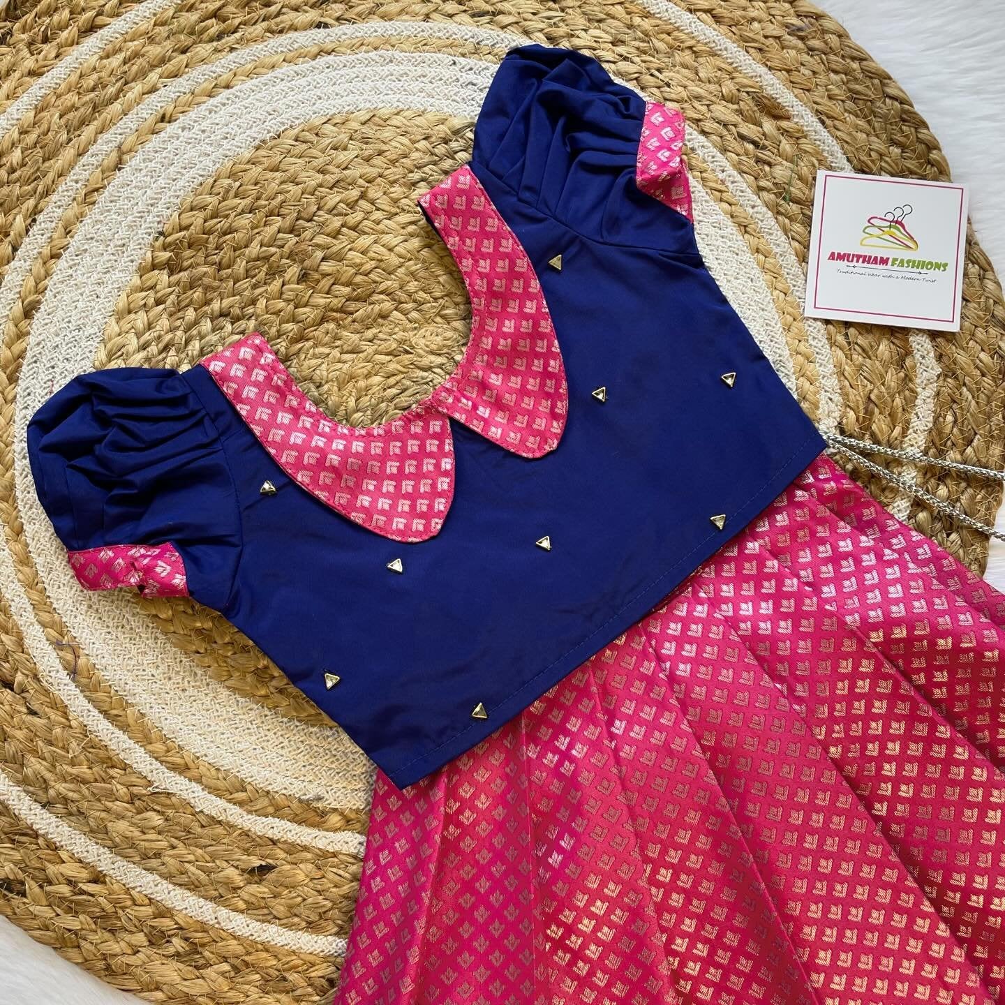Blue Top and Pink Semi Silk Paavadai Sattai