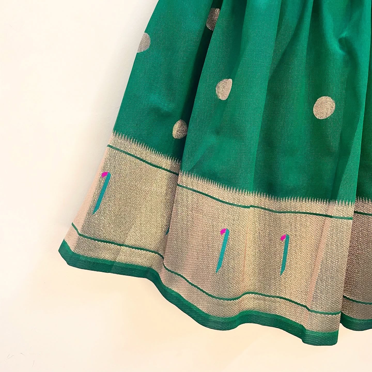 Forest Green and Pink – Authentic Paithani Silk Paavadai and Sattai