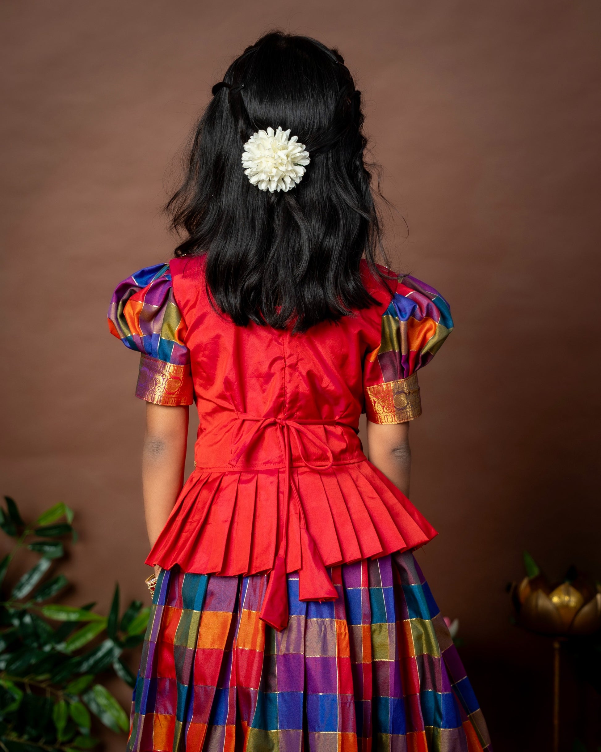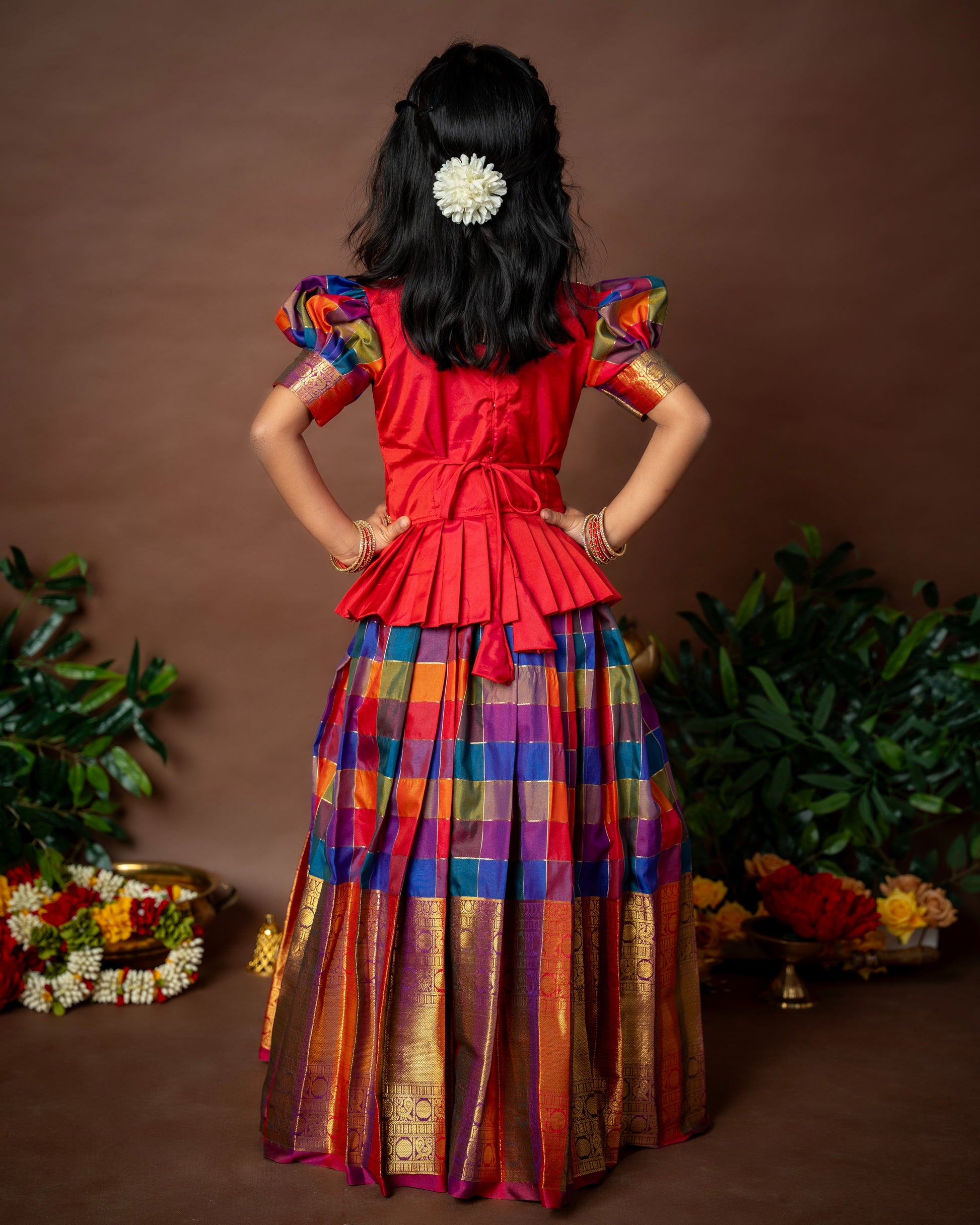 Paalum Pazhamum Multi Color Checks with Traditional Long Border Kanchi Pattu Paavadai Sattai